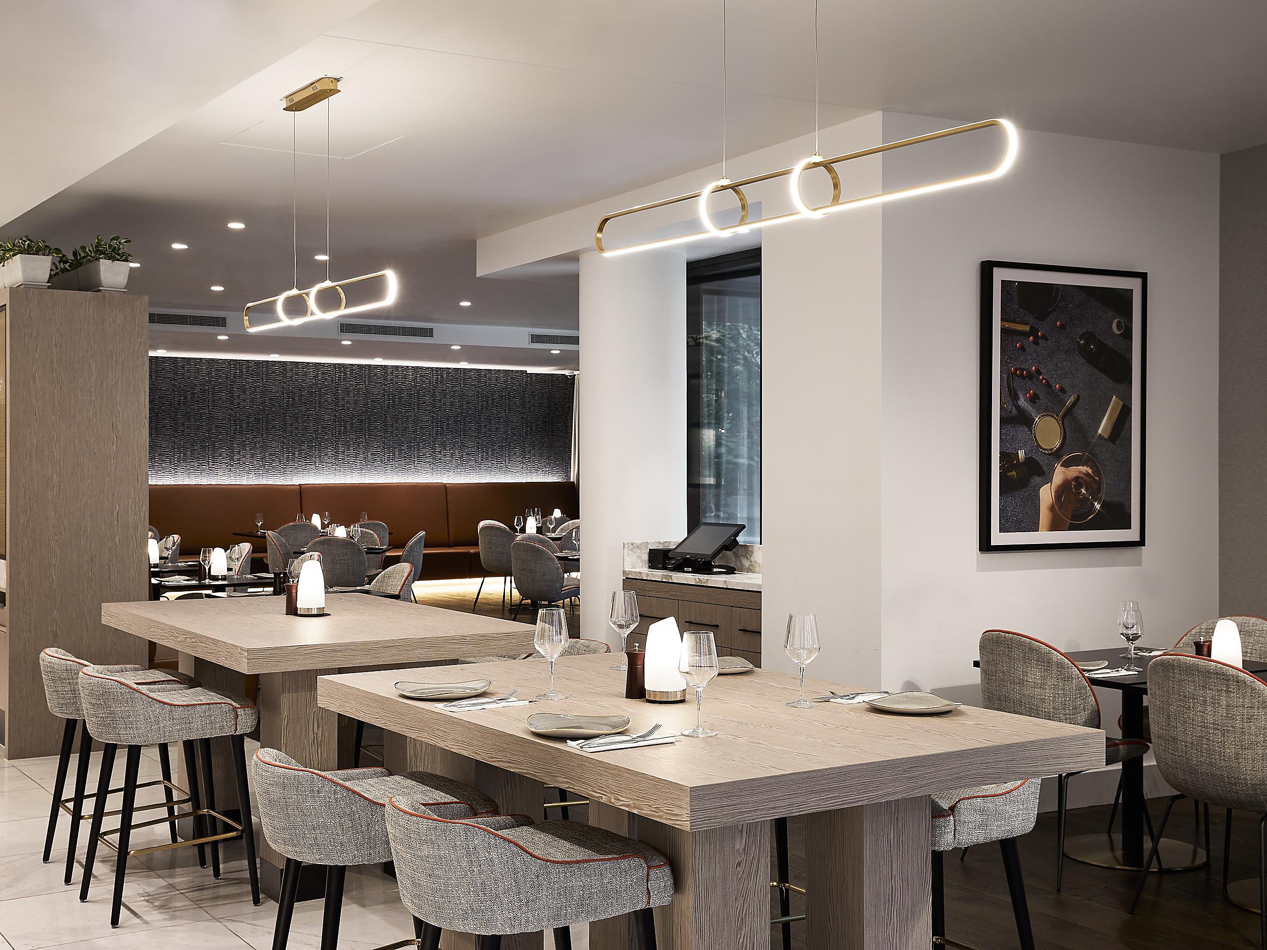 The dining room at ormeggio at the spit provides a contemporary and vibrant atmosphere for both lunch and dinner.